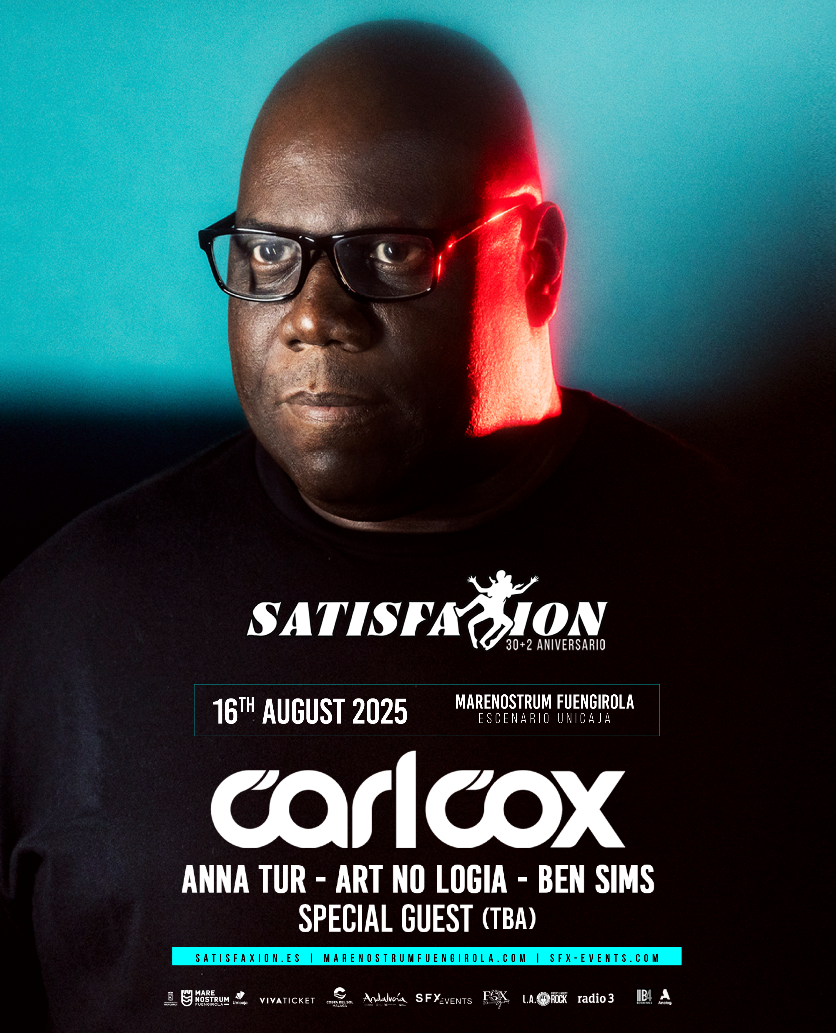Pero esto no es todo, una gran sorpresa de primer nivel se unirá pronto a este line up, un line up sin fisuras encabezado por Carl Cox y que demuestra que nadie hila más fino que Satisfaxion a la hora de programar. Os esperamos a todos en Marenostrum Fuengirola el 16 de agosto para compartir un viaje electrónico sin parangón.
