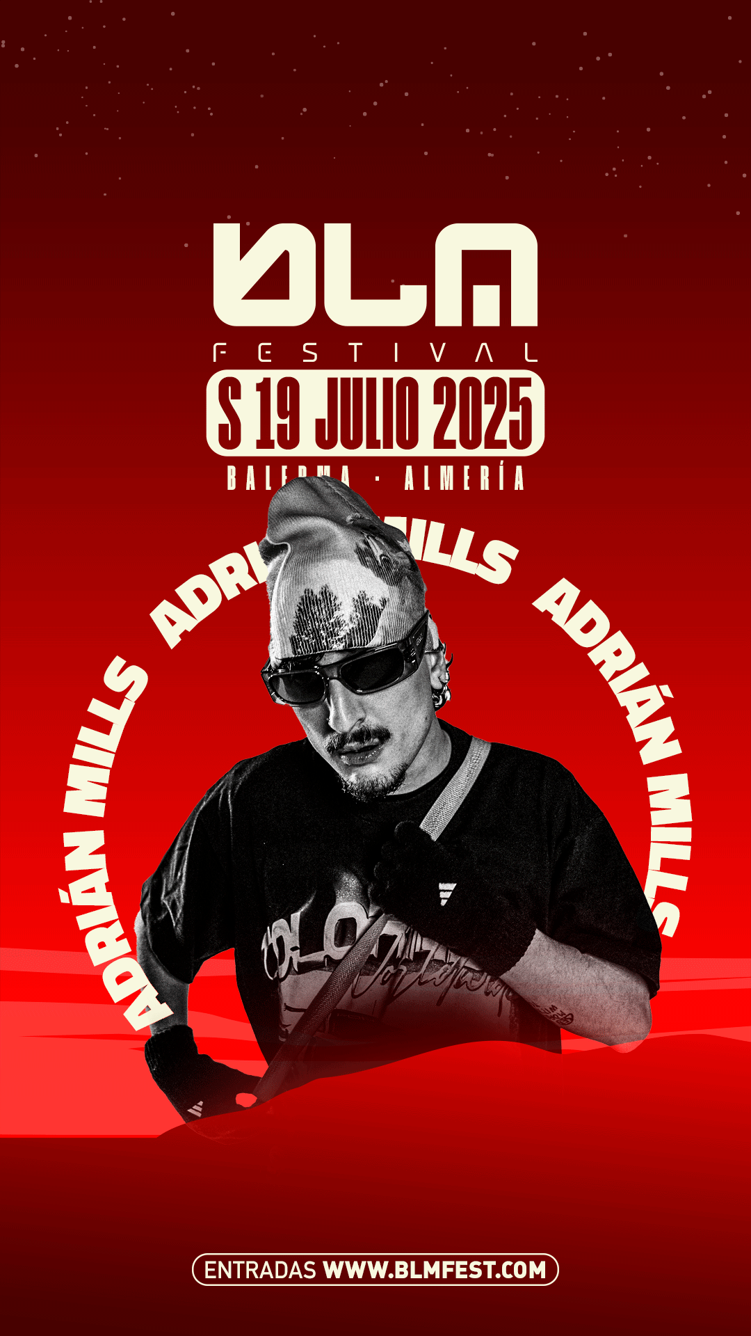 El último artista en unirse al cartel de BLM FEST es Adrián Mills, fundador y gurú de  240 KM/H. Adrián es conocido por su estilo musical ecléctico y dinámico, que abarca una amplia variedad de sonidos contundentes. Su paleta sonora incluye (Early) hardstyle, hardcore, acid y hard techno, todos ellos fusionados con elementos únicos como influencias ghetto y vocales. Además otros dos miembros de la plataforma musical 240 KM/H se subirán a la cabina del festival almeriense, Fumi y Human Error llenarán de electricidad sonora y de contundencia el escenario de BLM FEST.