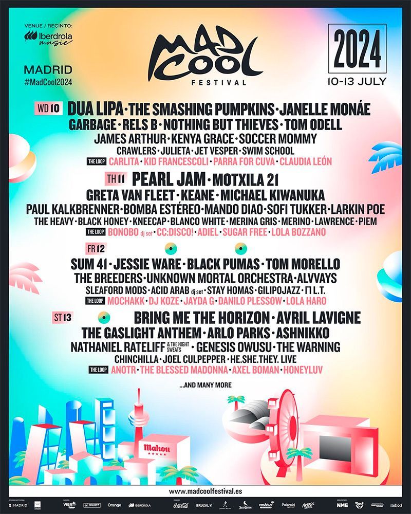 Un total de 21 artistas que se unirán a los ya anunciados PEARL JAM, DUA LIPA, AVRIL LAVIGNE, BRING ME THE HORIZON, THE SMASHING PUMPKINS, GARBAGE, MICHAEL KIWANUKA, entre otros. El cartel terminará de completase con el anuncio de los ganadores de «Mad Cool Talent by Vibra Mahou» y de «Mad Cool Dj Talent by Vibra Mahou».